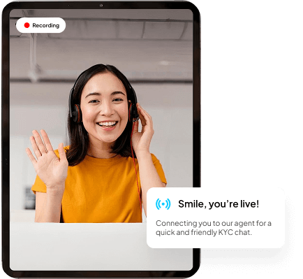 The customes is guidedthrough the kycverification procedurevia a live video session.